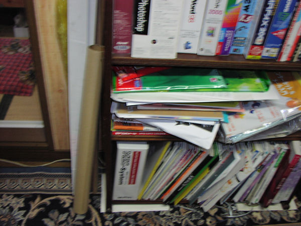 | 買ったけど使われることの無いソフトと参考書たち・・・・・。「いつかやろう」= 「一生やらない」というパターンに陥っているようです。 | |